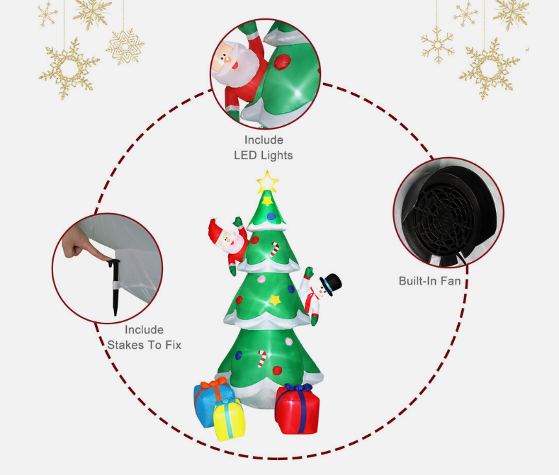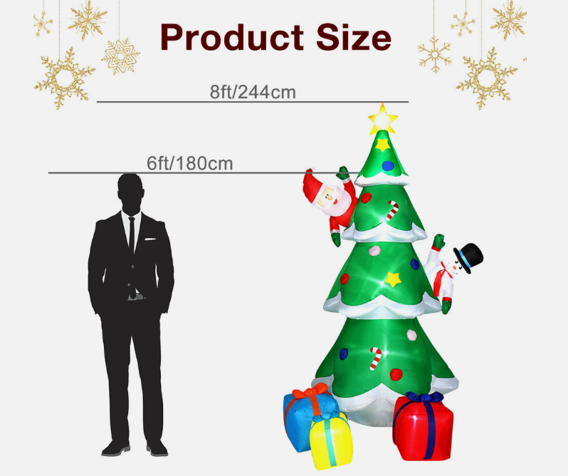 8FT Inflatable Christmas Tree Snowman Santa Claus +LED Lights Outdoor Yard Decor