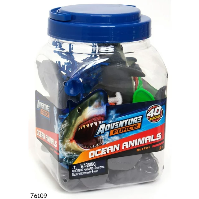 Adventure Force 40-Piece Jumbo Bucket Play Set, Ocean Animals.