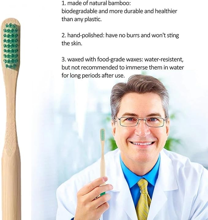 • 【 High-Quality Materials】 Crafted from premium quality bamboo, our toothbrushes are durable, sustainable, and an ideal choice for those looking to reduce their plastic consumption.