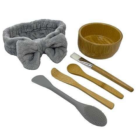 BEECO GIF2U Skincare Face Mask Mixing Bowl Set,Makeup Skin Care Products for Clay Mask,Home DIY Beauty & Personal Care Tools Kit Bamboo Bowl,Spatula,Spoon,Brush,Silicone Applicator,Facial Headband