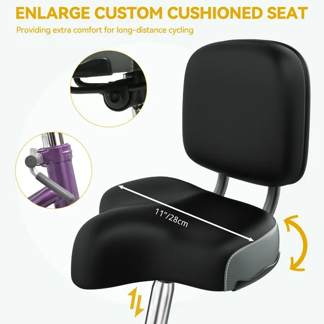 • SUPER COMFORTABLE SEAT:The tricycle features adjustable seats that can be customized to your height and preferred angle; and the enlarged cushioned seat is 2 inches wider than others, providing extra comfort for long-distance cycling,while the backrest ensures correct posture and support to alleviate backache