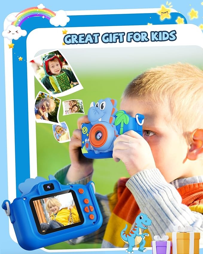 ?Perfect Gifts for Kids:Perfect Gifts & Toys for Kids: This kids camera design with cute unicorn/dinosaurs cartoon case, children will like it and enjoy to use this camera recording every wonderful moments.It is a perfect Christmas, Birthday, Festival ,Holiday gifts for girls and boys aged 3~12.