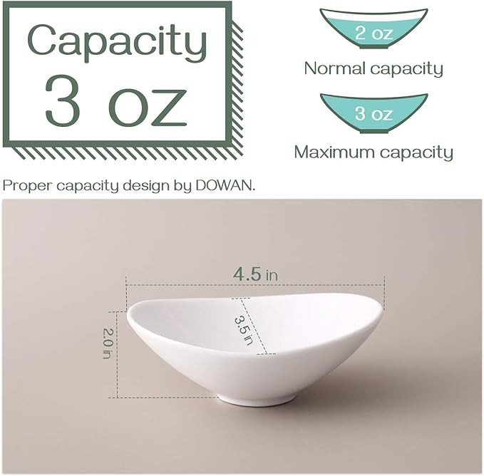 Healthy and Sturdy Porcelain: Dowan condiment cups are made of top grade porcelain and fired at a high temperature to maximize the strength of the porcelain. These dipping sauce dish are durable ceramics, lead-free & cadmium free, and harmless. Never worry about harmful substances leaching into your food.