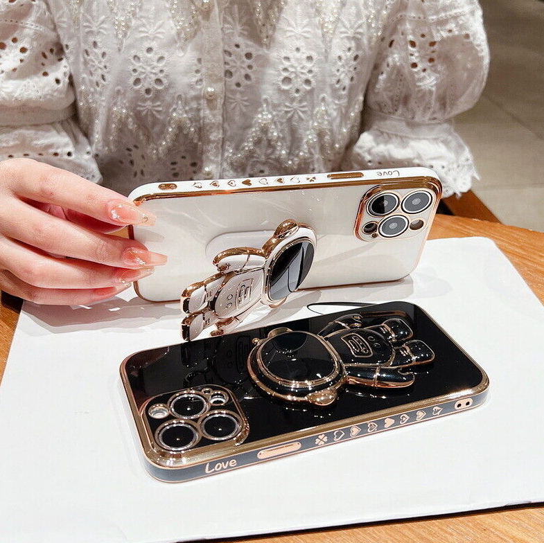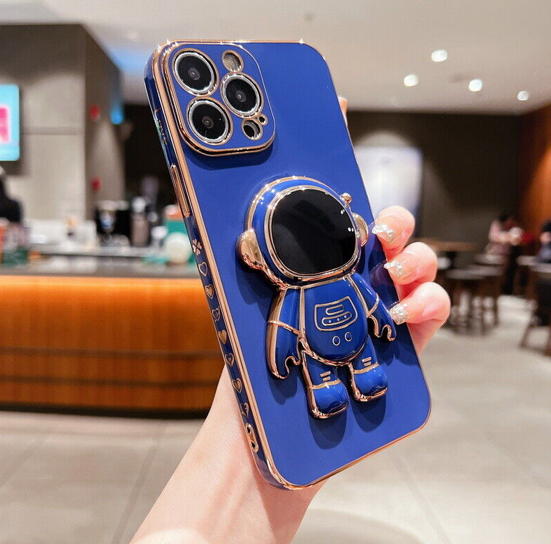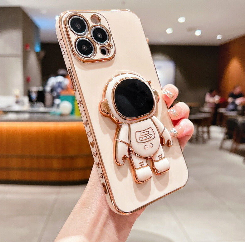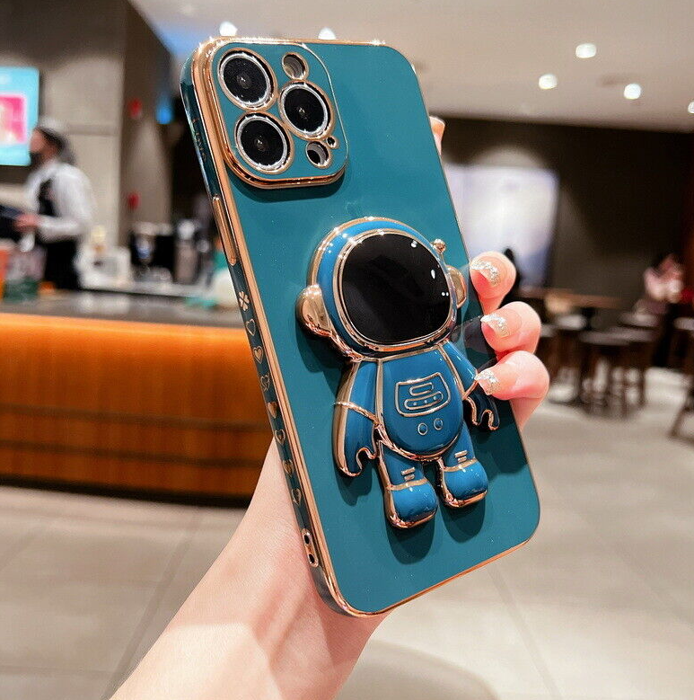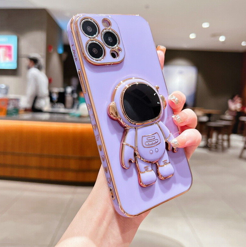 For iPhone 13 12 Pro Max 11 XR XS 7 8 Plus SE Plating Astronaut Stand Case Cover