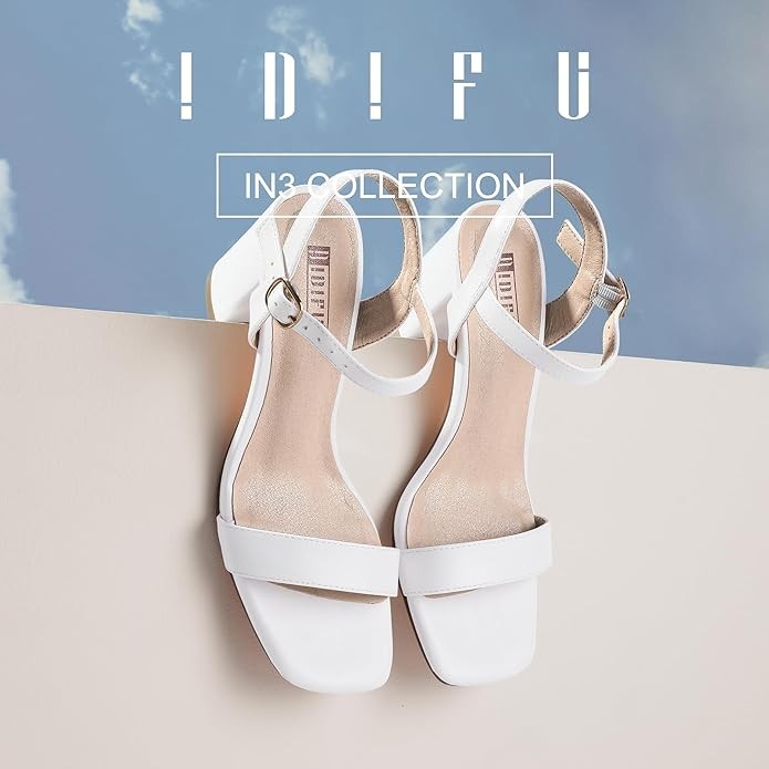 IDIFU Women's IN3 Chunky Heels for Women Dressy Square Toe Heels Slingback Block Heels Sandals for Wedding Bridal Evening Homecoming Prom