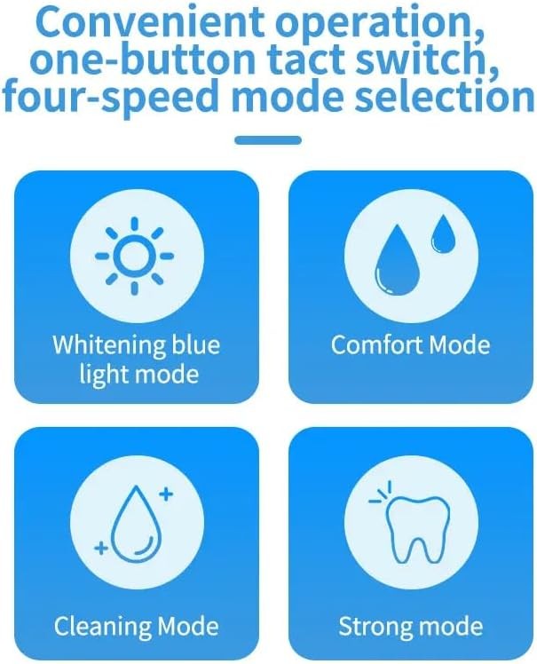 • 【Four-speed mode selection】A:Whitening Mode. B:Comfort Mode. C:Cleaning Mode. D:Strong Mode.Convenient operation, one-button tact switch.
