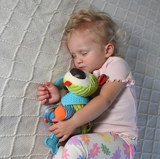• Rattle Rings: Shake, rattle, and roll! Furry Friends feature rattle rings that create gentle sounds, encouraging your baby's exploration of cause and effect. The lightweight rings are easy for little hands to grasp and shake