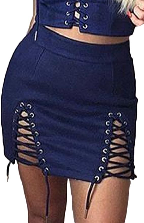 Meyeeka Womens Sexy High Waist Lace Up Bodycon Faux Suede Split Tight Mini Skirt