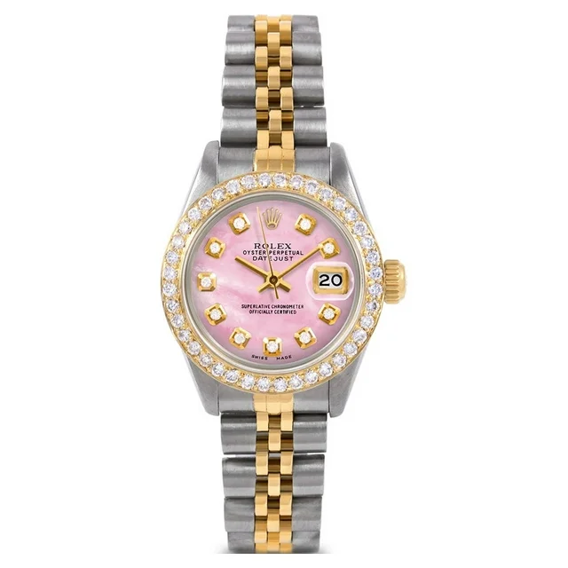 Pre-Owned Rolex 6917 Ladies 26mm Datejust Watch, Custom Pink Mother of Pearl Diamond Dial & Custom 1ct Diamond Bezel on Rolex Yellow Gold & Stainless Steel Jubilee Band