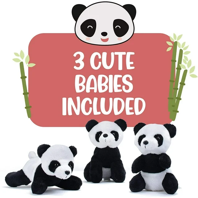 • SET INCLUSION - This set includes a 13-inch plush panda with tummy-zippered carrier and 3 little cubs.