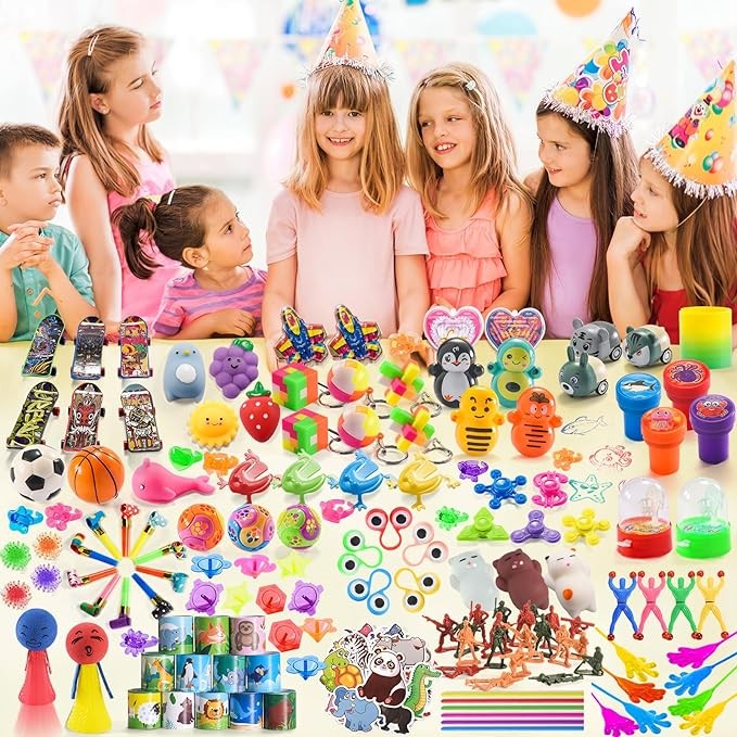 • ?【Goodie Bags Stuffers for Kids Party】?These bulk kids toys are ideal for birthday party favor, classroom rewards, treasure box toys for classroom, fiesta carnival prizes, pinata stuffers, goodie bag stuffers, easter egg fillers, Christmas stocking stuffers, back to school gifts, return gifts and more. The treasure box prizes toy set is the perfect party favor for boys and girls ages 3 and up.
