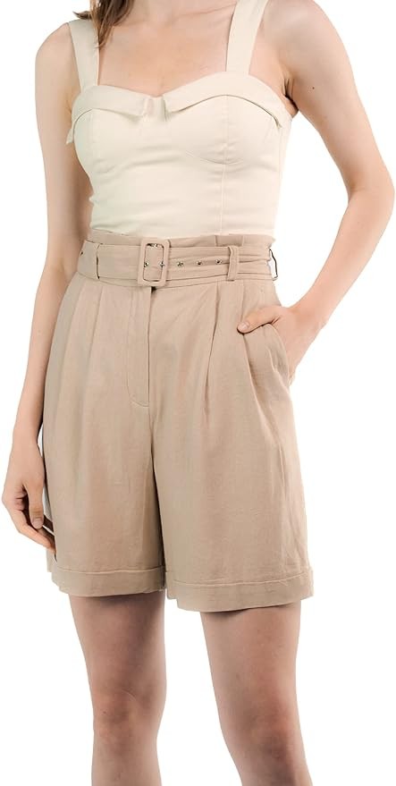 ? [???? ??????? ??????] Sandy & Sid high-waisted women's shorts are loose fitting and have an adjustable belt with 2 sides pockets. We choose 3 colors: Beige - Green - Black for you to pick your favorite shorts.