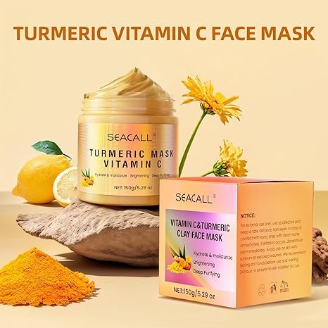 Seacall Turmeric Vitamin C Face Mask with Vitamin C, E and Aloe Vera For Radiant Skin Pore Refining, Blemish Targeting, Deep Moisturizing (5.29 oz)
