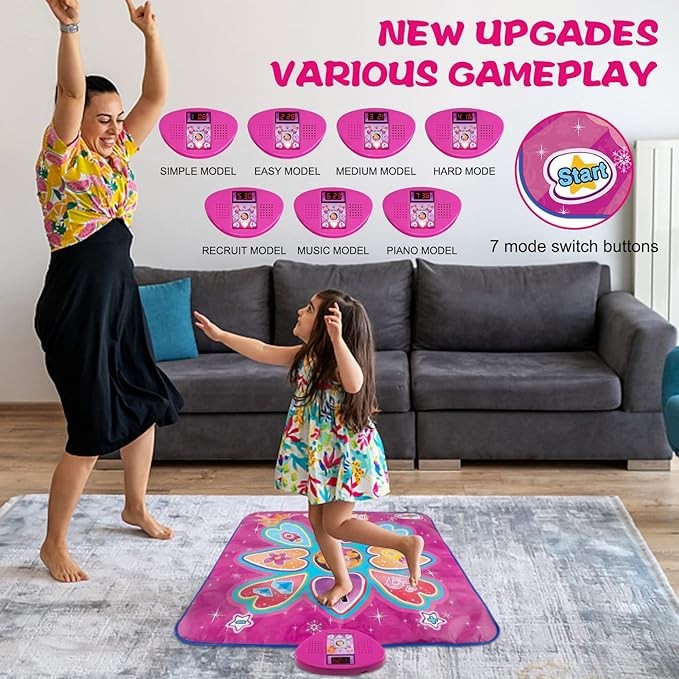 • ?【7 Exciting Game Modes】Easter Gifts This dance mat toy features 7 different game modes, including 4 challenging levels, a breakthrough mode, a music playback mode, and a piano mode. Kids can easily switch between modes, control the volume of the music, and immerse themselves in a fun and engaging workout.